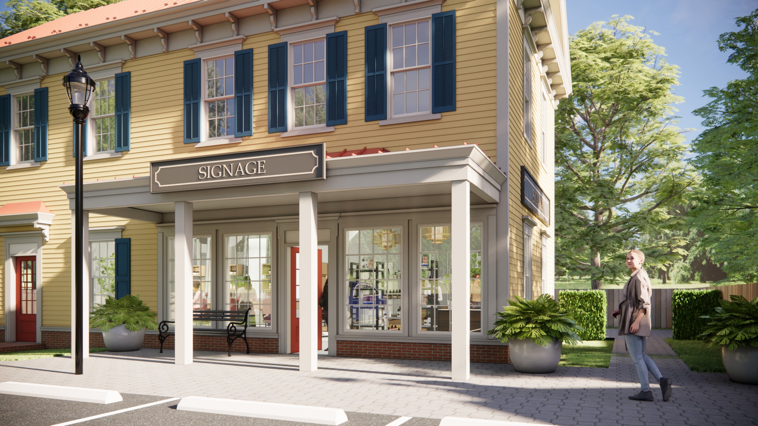 The ground floor provides flexible retail space with generous storefront windows and a welcoming covered entry, while the second floor houses light-filled professional offices. Traditional Italianate detailing—such as bracketed eaves, vertically proportioned windows, and a simple gable roof—helps the new building blend seamlessly with its historic setting. The result is a contemporary structure rooted in local history, supporting small businesses while reinforcing the architectural continuity of the site.