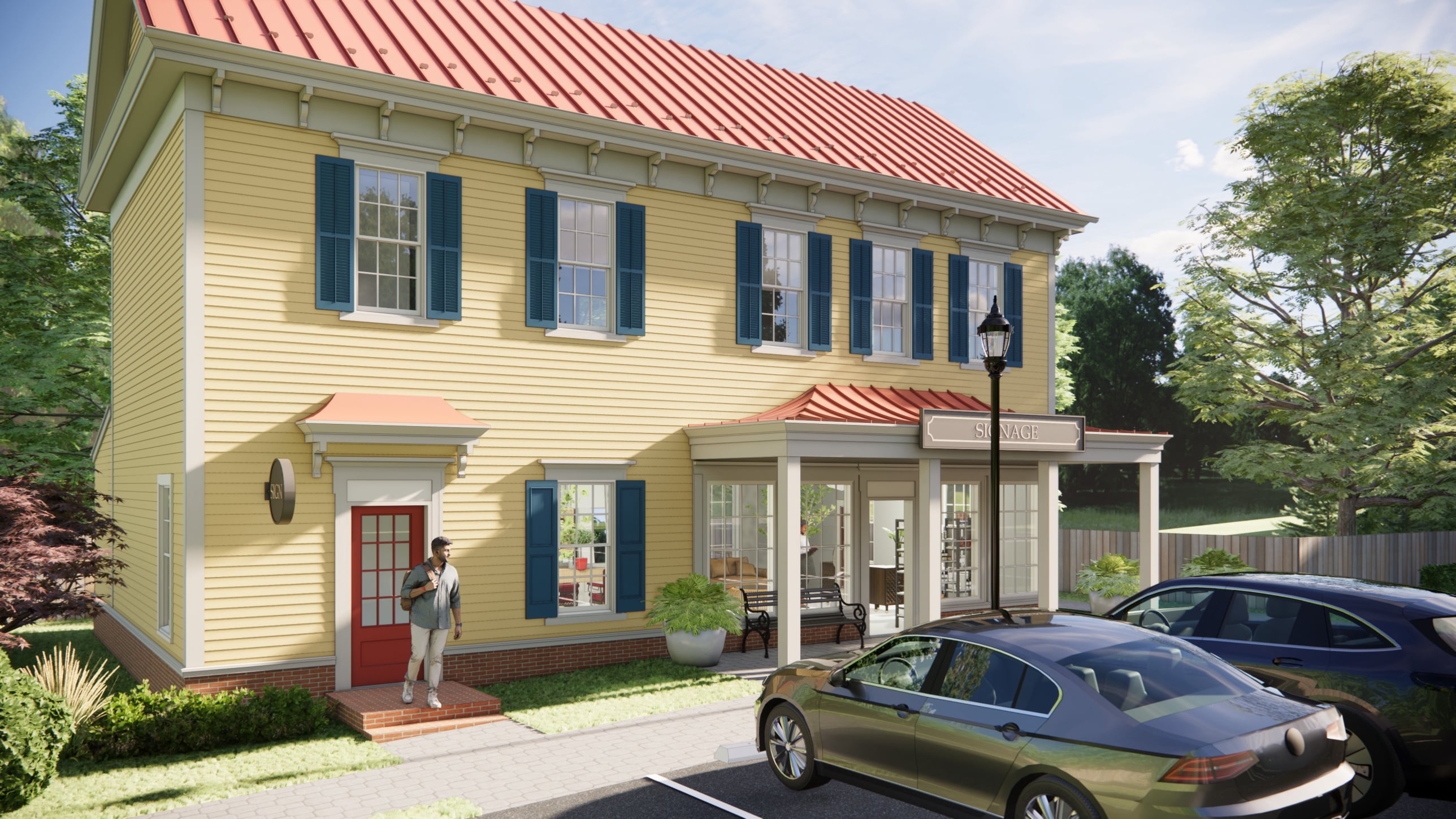 This new two-story mixed-use building replaces a former barn structure once associated with the historic Alfred H. Burr House (built in 1878) in Moorestown, New Jersey. Designed as a respectful addition to the property, the project builds on the Italianate architectural character of the original building—continuing its rhythm, proportions, and decorative language while accommodating modern commercial needs.